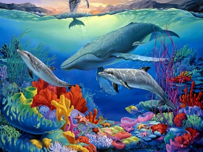 Tranh kính 3D Cửu Ngư Quần hội